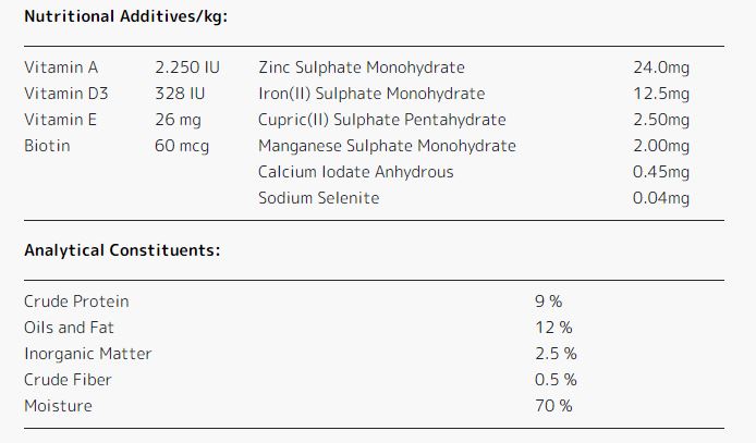 suplimentată cu vitamine, minerale și uleiuri esențiale; nu se adaugă coloranți, conservanți sau arome.