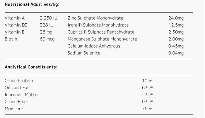 suplimentată cu vitamine, minerale și uleiuri esențiale; nu se adaugă coloranți, conservanți sau arome.