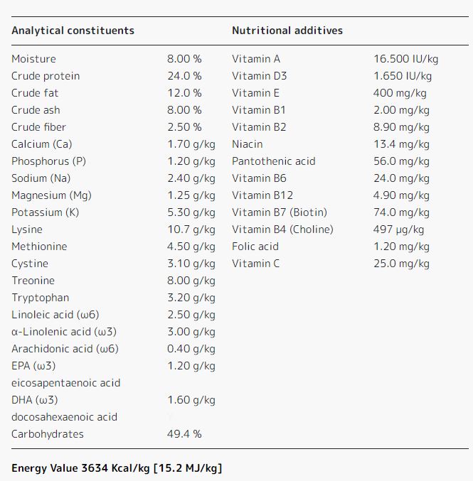 Îmbunătățirea funcției rinichilor și ficatului: Conținutul scăzut de proteine ​​24% (13,5 g/MJ) reduce producția de amoniac, facilitând astfel funcția rinichilor și a ficatului. În același timp, menține masa musculară. Nivelul scăzut de fosfor (P) + Nivelul ridicat de vitamina E reduce riscul de insuficiență hepatică și renală. Conținutul scăzut de sodiu (Na) contribuie la controlul tensiunii arteriale și la menținerea bunei funcții renale.
