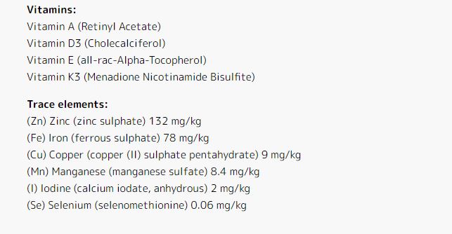 Controlul mirosurilor: Extractul de Yucca schidigera, care conține așa-numitele saponine naturale, reduce formarea de petre de sare (amoniac, uree, nitriți și nitrați) și scade extracția gazelor nocive și a mirosurilor neplăcute din fecale și urină. În plus, datorită extractului de Yucca schidigera, îmbunătățește aportul de nutrienți, ceea ce influențează pozitiv flora intestinală. O combinație eficientă de vitamine speciale susține facultatea vizuală și ajută la prevenirea reducerii acesteia prin îmbătrânire.
