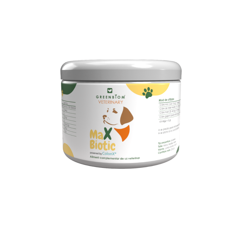 MAXbiotic este un supliment complex creat pentru sanatatea digestiva a cainilor, care combina inteligent probiotice (bacterii benefice) cu prebiotice (hrana lor), pentru un echilibru real al florei intestinale.